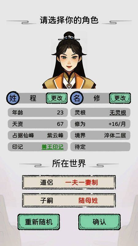 比如进游戏自己是50天资20岁,下一代也大差不差50天资但是年龄是0岁到了天资事件的时候就可以大幅度提升天资,到二代结婚大概就是350~500天资左右,到三代结婚大概就是650~800 左右,天资越高修炼速度越快。