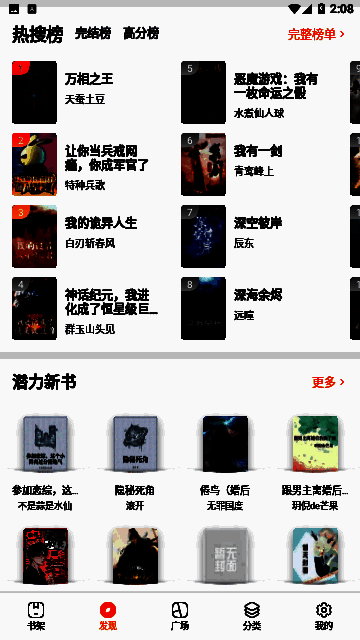1.提供丰富的小说列表,如流行列表、推荐列表和书签列表,读者可以通过这些列表发现小说。