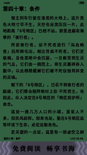 2.读者可以在低光环境下切换到夜间模式,更舒适地阅读令人兴奋的小说内容。