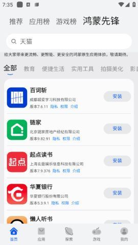 应用商店华为版app官网免费版APP可以让大家免费下载各类应用资源。专为华为HarmonyOS设计的多功能应用程序下载商店,用户可以下载各种HarmonyOS应用程序,在软件中可以获得大量的软件资源,各种软件和游戏非常全面,有很多好玩的游戏供用户随时选择。方便享受各种生活服务,通过平台找到自己需要的各种软件。全面覆盖游戏、小说、壁纸、电子书、安卓软件等内容,下载、安装一步到位,海量应用,总有你想要的。