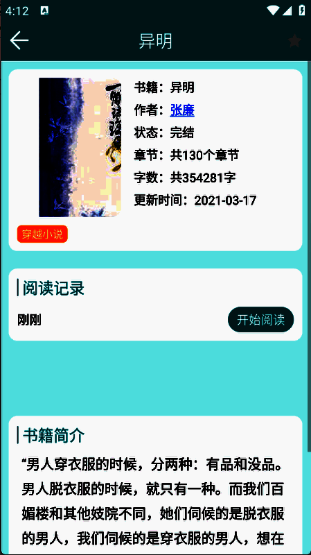 5、点开想看的小说进入详情页点击“开始阅读”。