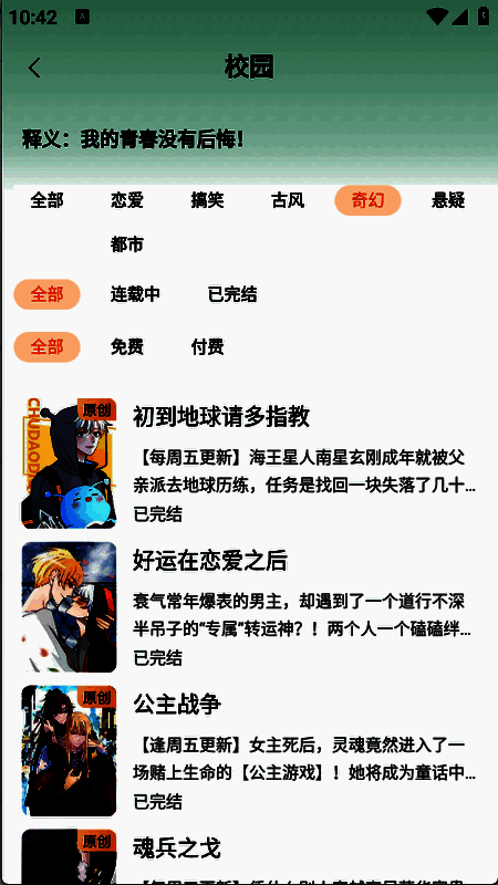 锦书免费小说汇集了大量的小说和漫画资源,为各位带来了多样的乐趣,包括言情、古装和科幻等多样化的类型,以满足不同用户的阅读喜好,所有的小说和漫画都是免费阅读的,没有任何广告的干扰,并且会不断更新最新的小说和漫画资源。