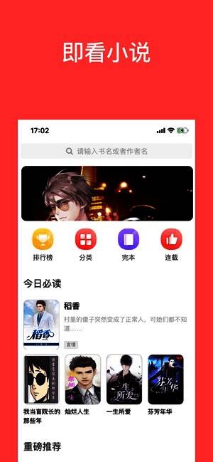 即看小说最新版是一款非常火爆的精品小说追书软件,涵盖了都市,武侠,玄幻等热门小说类型,可以自由选择查看,随时阅读精品小说书籍,还汇聚各类优质小说图书,随时随地免费阅读看书,能完全满足用户的所有阅读看书需求,还为用户提供个性化的阅读模式和功能,轻松享受阅读的乐趣,还可以自由查看热门小说榜单,轻松选择最新最受欢迎的小说来看,给用户带来优秀的追书阅读之旅,随时自由下载缓存感兴趣的小说图书。