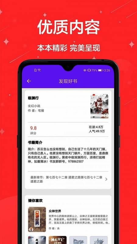 2、拥有丰富的小说资源库,涵盖各种题材和类型的小说,包括奇幻、都市、言情、武侠、科幻等;