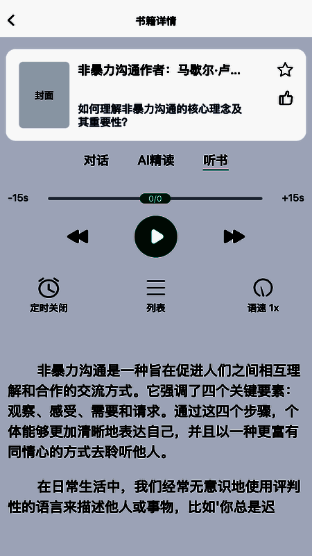 书尖功能是将电子书内容转换成语音进行播放的功能。用户可以利用该功能将书中的文字内容转换成语音,达到“听书”的效果。这样,用户在走路、开车、做家务等各种场合都可以通过耳朵接收关于书籍的信息,大大提高了阅读的便利性和灵活性。用户只需选择自己想听的书,开启语音朗读功能,app就会自动读出书籍内容。同时,该功能通常支持语速、音调等个性化设置,以满足不同用户的需求。