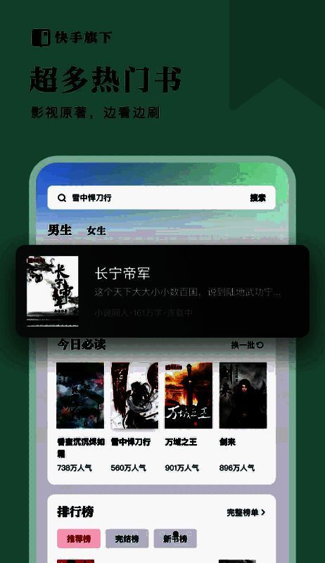 这是一款非常受欢迎的小说阅读神器,为用户提供了丰富多样的小说内容,汇聚了全网超人气的小说资源,所有内容均来自正版授权,免费为大家提供,随时随地都能在线阅读。无论是通勤路上还是休闲时光,这款应用都是你理想的阅读伴侣,带给你前所未有的阅读享受。快来下载体验吧,让每一刻阅读都成为难忘的记忆。