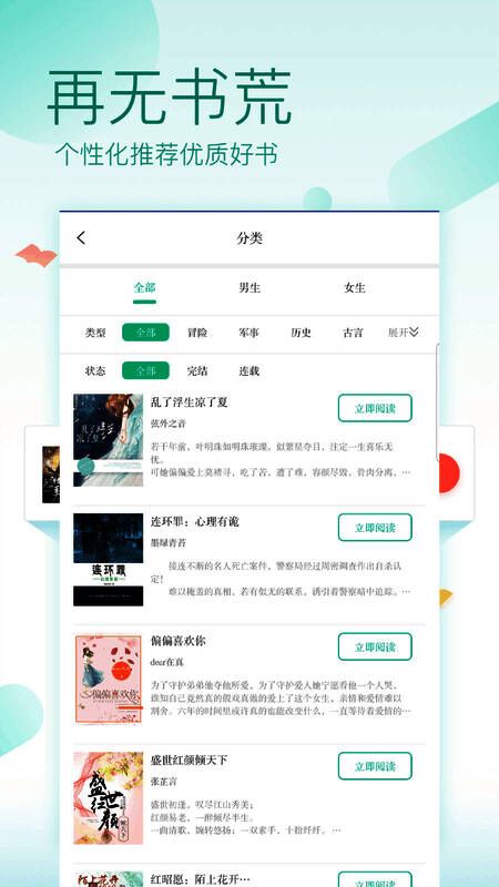 3、无论是热门作品还是经典作品,都可以在这里找到。书籍推荐和排行榜每天更新,不会错过任何热门小说。