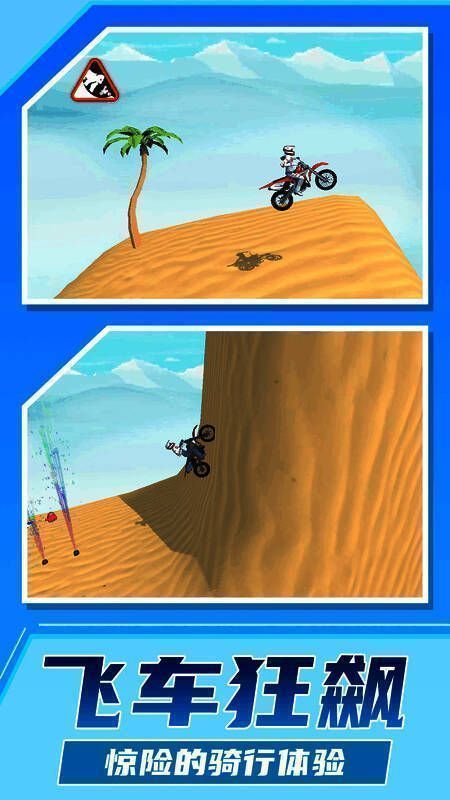 3、全新冒险体验:踏上令人兴奋的新冒险,解锁更多的赛道和挑战,享受火热的摩托车之旅的快感。