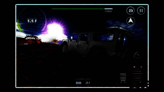 1、玩家需驾驶吉普车在不同的赛道上进行比赛,目标是尽可能快速地到达终点;