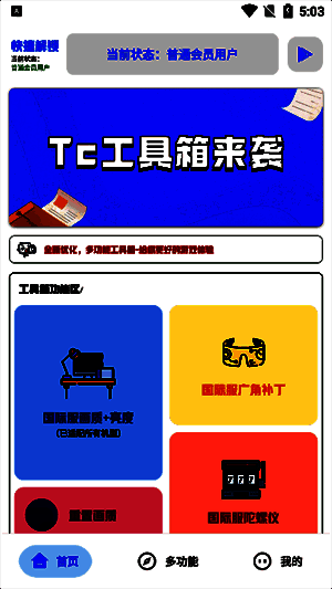 tc工具箱 超广角辅助是专为喜欢美味鸡肉游戏的玩家设计的工具箱软件。它还带来了更全面的游戏功能,可以极大地满足喜欢美味鸡肉游戏的玩家的需求。您可以随时享受良好的画质修改体验。里面有许多全新的游戏工具,允许用户轻松快速地修改游戏的图形,给自己一个非常满意和个性化的图形。高质量的图形可以满足用户的不同需求。用户可以根据自己的喜好和需求选择合适的图形模式,更好地体验游戏带来的沉浸感和乐趣。