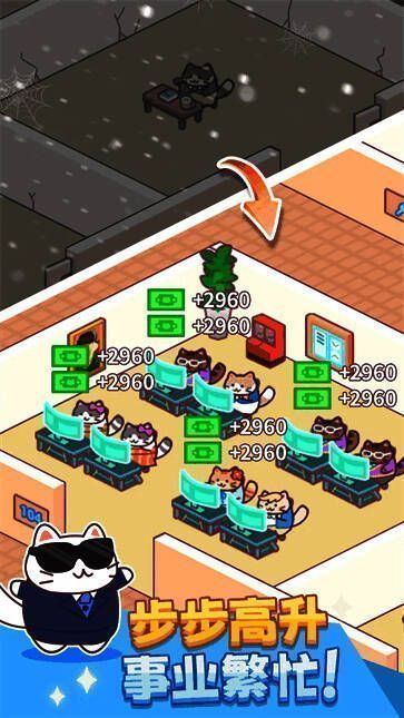 1.猫变成了劳动者,众多猫员工帮助玩家赚取利润,创造独特的商业体验。
