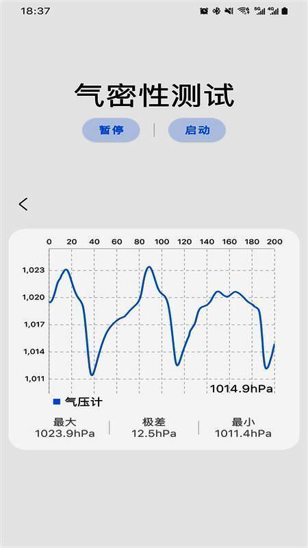 3.检测手机的气密性,暂停和启动,自动计算范围,显示最大和最小压力,了解手机。