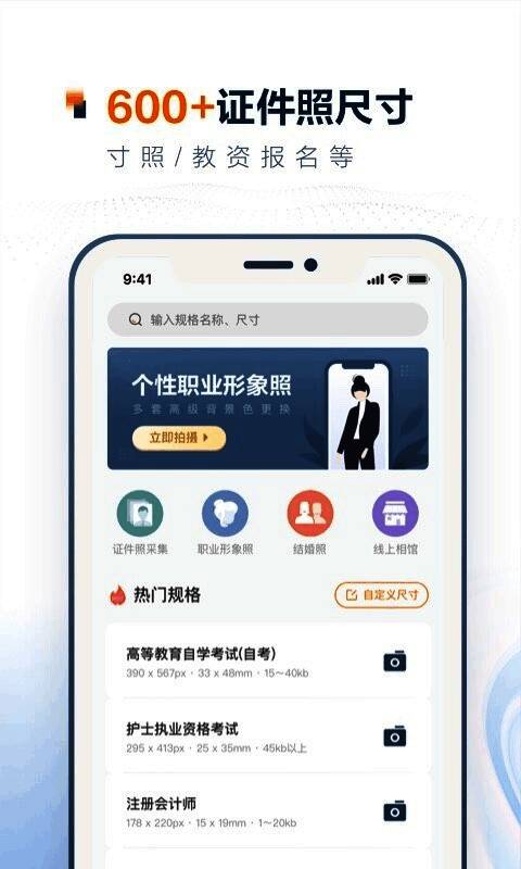 这款软件内置全新智能的人像识别算法,可以让用户在证件照不变形的情况下,轻松拍摄各种证件照,还拥有美白、放大眼睛、瘦脸等各种编辑操,随时随地自由制作各种好看的证件照。