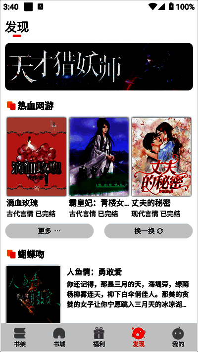 百味书香官方版实时更新小说内容,避免用户长时间等待。它还根据不同类型对所有小说进行分类,使用户可以轻松快速地找到他们想要的书。它也可以在本地下载,允许用户随时随地打开和阅读。它还为用户创造了一个非常舒适和干净的阅读环境。