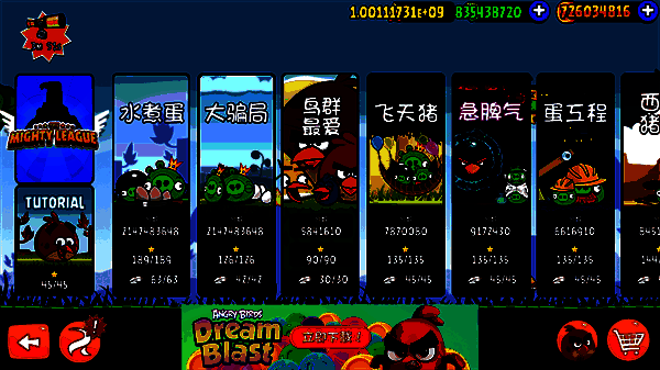 可使用羽毛提升小鸟等级,提高小鸟得分能力。打造终极鸟群。