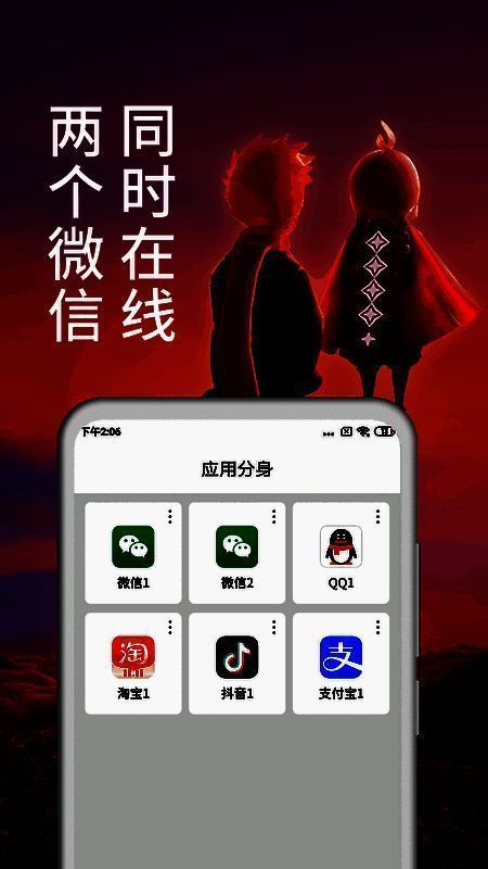 微信分身:一台手机,多个帐号,让您轻松分身,告别裤兜一排手机的苦恼。