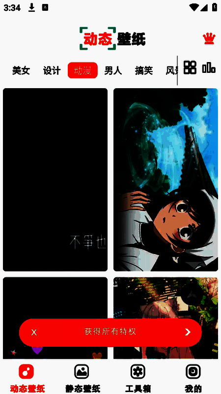 2、底部栏中有很多的壁纸资源,包括动态壁纸个静态壁纸,各种风格类型全部都有。