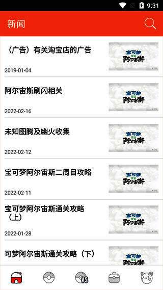 1、下载安装完成后即可运行,一进入即可看到宝可梦相关游戏文章攻略;