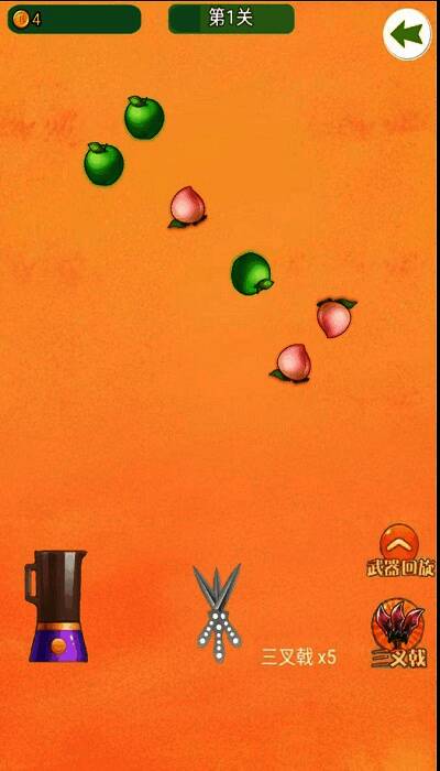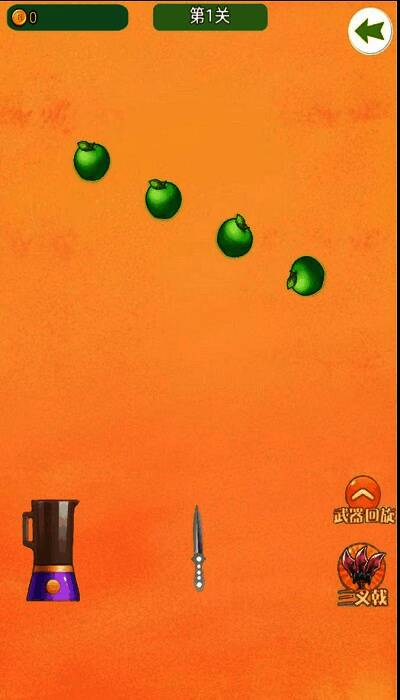 1、手指在屏幕上滑动,即可操控刀刃快速切割从屏幕下方弹出的水果,获得分数;