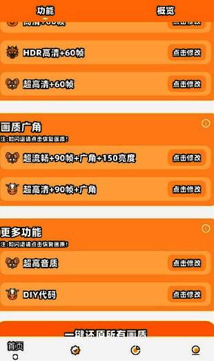 ×l6666ca画质怪兽APP包含了多种好用的吃鸡工具。无论是120帧画质还是准星等都可以开启。软件可根据不同的手机性能自动调整匹配,让玩家更好的玩游戏,为每个玩家带来最佳的游戏画质和流畅的操作,一键修改参数,用户随时随地体验。是专为广大游戏爱好者打造的游戏助手软件,该软件可以帮助您修改游戏画质,使其更清晰、美观、更细致地贴合手机屏幕,让小鸡游戏画质得到提升。