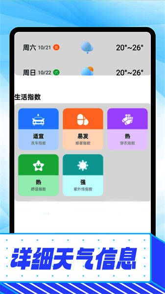 2、用户可以通过软件随时查看目标地区的天气情况,以便合理安排出行和活动,轻松了解最新天气;