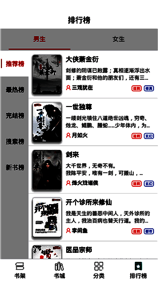 3、书架管理:APP还可以为用户提供书架功能,用户可以将自己喜欢的小说添加到书架中,方便管理和快速存取。