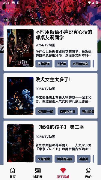 花子动漫是一款免费的在线追番软件,每天都会有非常丰富番剧,你可以在这里面自由的来进行观看,各类型的优质动漫作品为你尽情推荐。可以让你快速的找到与自己拥有共同爱好的朋友,并且一起进行畅聊,认识更多的动漫爱好者,在这里能互动。页面看起来也是非常简洁,是可以给你带来不一样的观看体验,各类型的精品动漫作品都有,追番观看很出色。