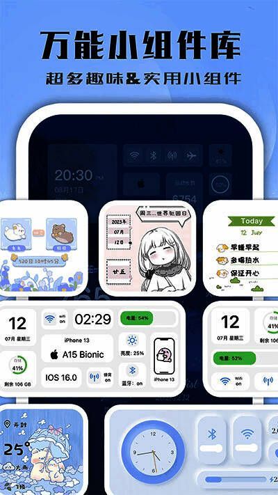一款功能丰富的移动小部件软件,为用户提供各种小部件供其选择。用户可以根据自己的喜好和共同需求在移动桌面上添加各种小部件,从而方便快捷地获取相关信息。它包括照片墙、周年倒计时日历、时钟、天气和待办事项列表等组件,可以自由搭配各种材料。它易于搜索,可以为每个人实时更新。这里有各种各样的样式,有许多小部件和图标样式可供下载和使用。有丰富的桌面小部件和图标。
