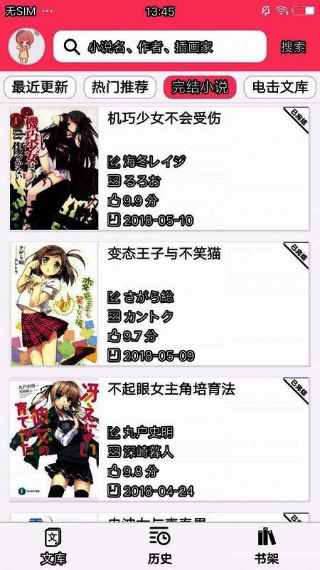 迷糊轻小说官网版是一款非常受欢迎的热门看书阅读软件,为用户实时收录各种各样的小说书籍,涵盖轻小说,都市小说,武侠小说等资源,各种小时类型都有,可以选择喜欢的小说书籍来阅读,里面的所有小说都是免费的,自由在线阅读看书,给用户带来全面的小说阅读服务和乐趣,还拥有便利的小说搜索方式,可以轻松检索各种精彩的小说书籍,免费阅读看书,能完全满足用户的所有阅读需求,还可以你自由选择感兴趣的小说书籍来下载。