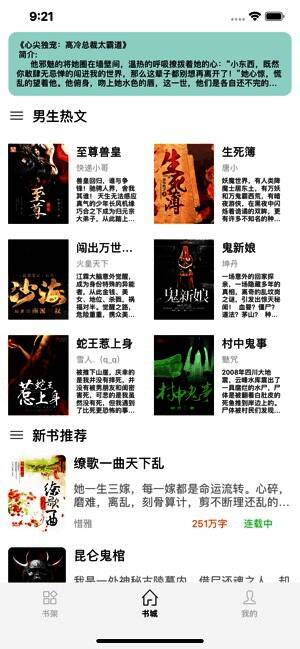 1. 书城:软件拥有庞大的书城,囊括了各大小说网站和作者的作品,可以为用户提供丰富多样的阅读资源;