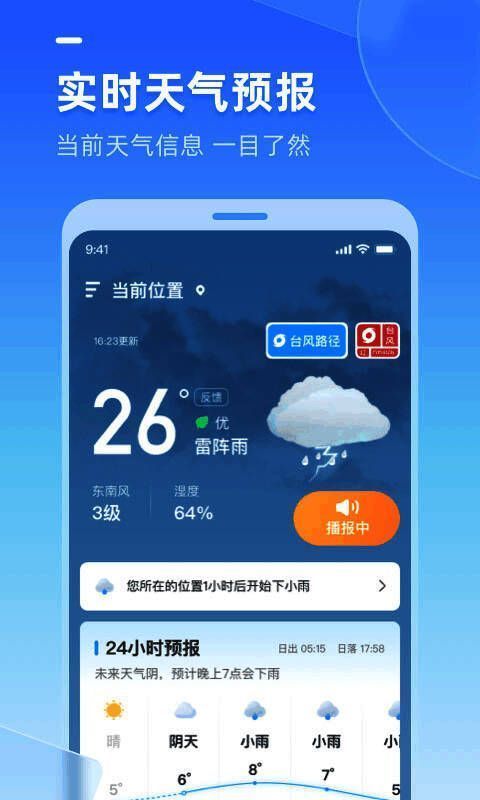 4、软件方便用户随时使用,可进行24小时天气预报,为用户带来更详细的天气信息。