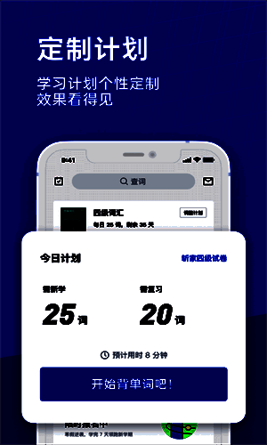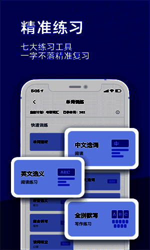 2、智能学习系统:参考美国SAT的词汇考核模式,精准测试字数,记录学习进度,为用户提供科学的学习指导。