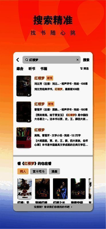 软件是非常受欢迎的小说阅读应用程序,提供了用户免费阅读的大量小说资源。在这里可以找到多种类型的小说,通过分类或快速搜索可以快速找到喜欢的作品,点击阅读,软件还提供了听书功能。随时随地玩得开心!感兴趣的朋友不要错过下载。