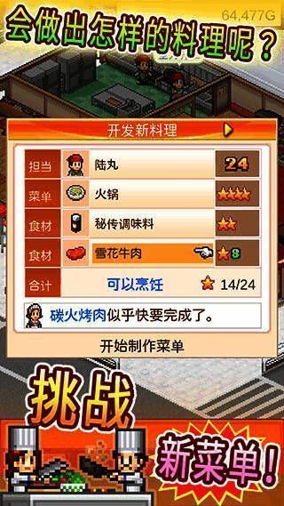 3.你的任务是经营自己的餐厅,逐步扩大规模,提高厨艺,吸引更多的顾客。