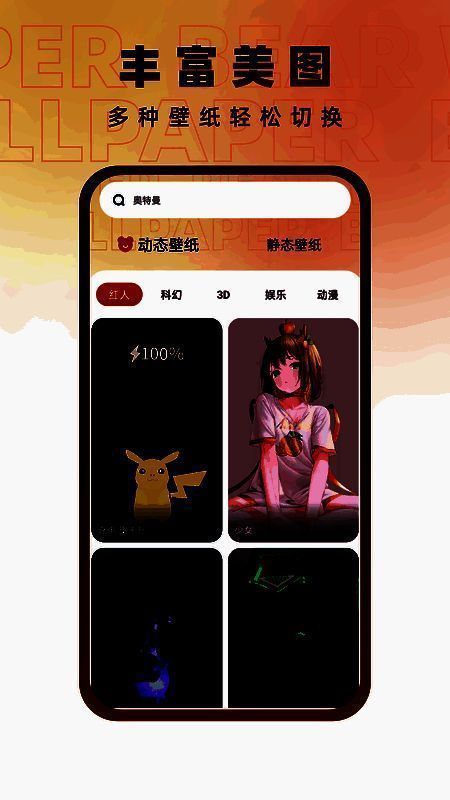 1、壁纸搜索功能:APP用户可以通过关键词搜索自己感兴趣的壁纸,以便快速找到目标壁纸;