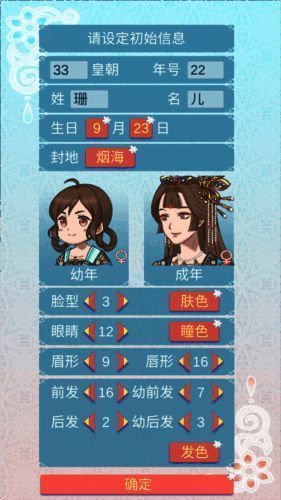 2、编辑长公主的姓名、生日、封地、脸型、眼睛以及发色等角色特征。