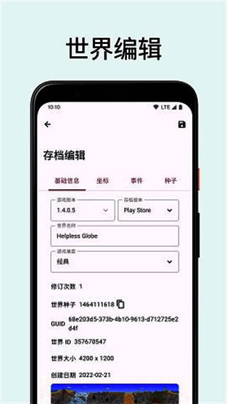 泰拉瑞亚存档编辑器官网版是一款专门为泰拉瑞亚手机版游戏制作的存档编辑器工具,用户不仅可以快速编辑泰拉瑞亚的存档文件,还可以快速获取存档文件并进行备份,让很多泰拉瑞亚玩家更好地玩游戏。