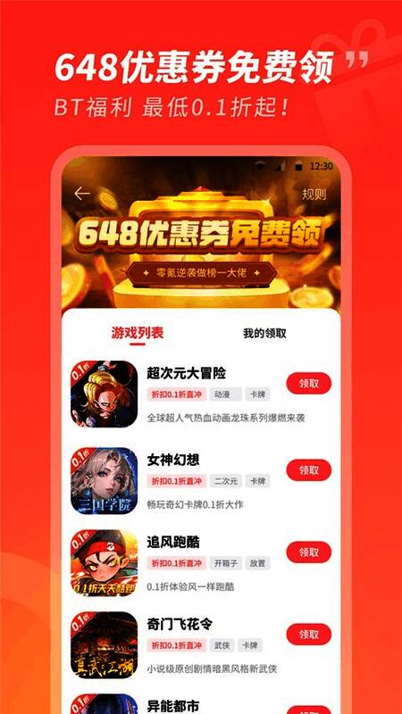 2、高额充值优惠:与众多游戏开发商合作,为玩家提供高额充值优惠,享受更多游戏内特权。