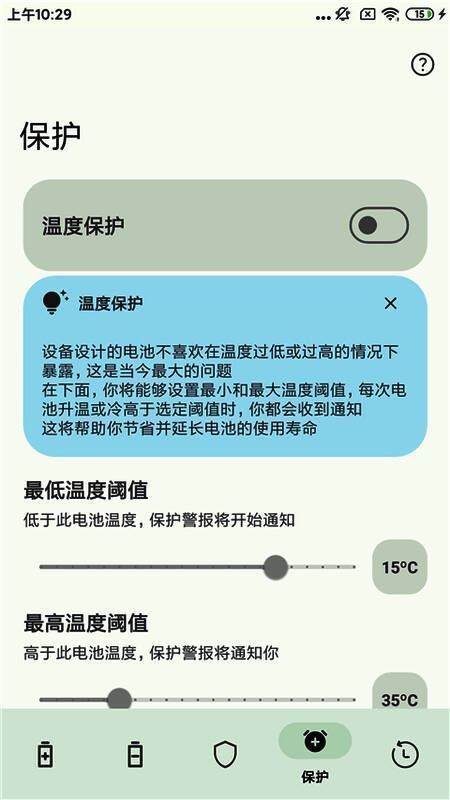 6、开启充电保护,可以防止温度过高,延长电池的使用寿命。