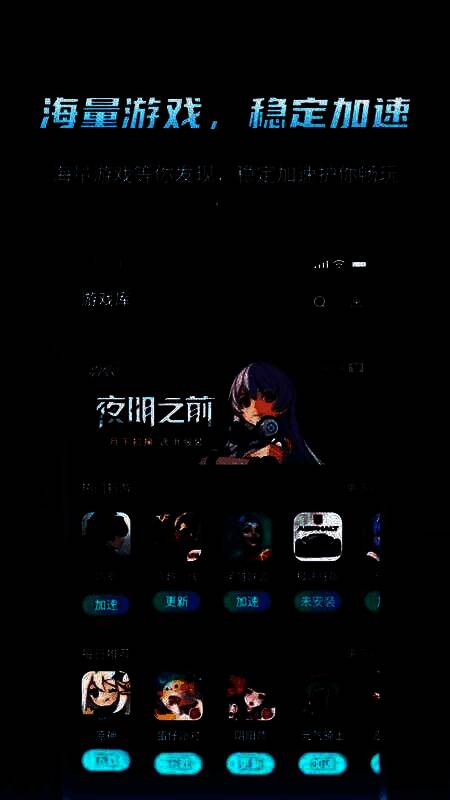 1、首先在本站下载并安装该软件,进入该软件默认进入加速页面,在当前页面可以软件会自动识别设备内可加速的游戏。