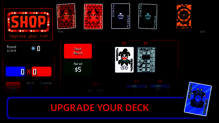小丑牌是一个有趣的策略回合为基础的纸牌游戏超过150小丑卡,每一个都有自己独特的技能。你可以用它们来匹配不同的卡组,还可以升级这些牌和优惠券来提高你的得分,最终分数超过BOSS视为通关。