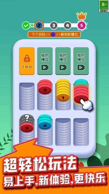 2、通过排序和排列来解决每个关卡中的挑战,适合所有年龄段的玩家,操作简单易懂;