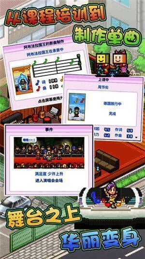 百万乐曲物语安卓版是一款游戏丰富的明星培养游戏。在这里,你将成为经纪人,发掘和培养不同性格的新人歌手,帮助他们踏上音乐的巅峰,成为闪耀的超级明星。玩家可以自由定制艺人的发展方向和路线。这里有充足的培训课程和发展路径、丰富的销售活动和发展机会,玩家可以自由选择。像素风格的游戏界面,亲切怀旧,带你进入充满梦想的娱乐圈。感兴趣的朋友不要错过下载。