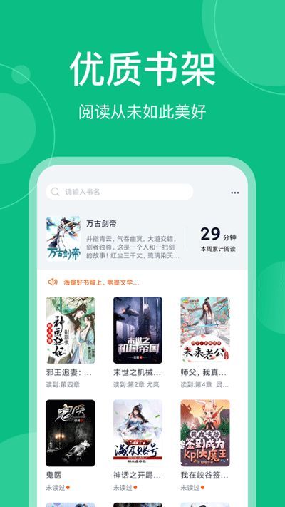笔墨文学手机版是一款热门的免费看书阅读软件,汇集了许多优秀的作家和热门小说作品,可以让用户自由选择查看,随时在线看书阅读,还为用户提供各种类型的小说书籍和书单,方便用户轻松选择喜欢的小说来看,自由享受便利的追书阅读之旅,给用户带来完整的小说阅读服务,还可以自由设置小说更新提醒,可以让用户在线阅读最新的小说书籍和内容,能完全满足用户的所有阅读需求,还可以让用户自由下载热门小说,随时随地自由看书阅读。