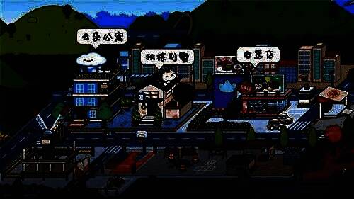 小镇地图从左到右分别对应的是:废弃工厂、露天房车天台、集装箱美食街;