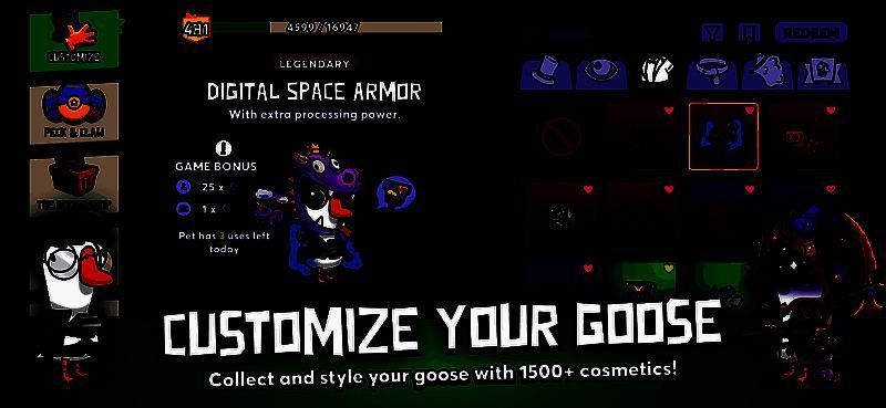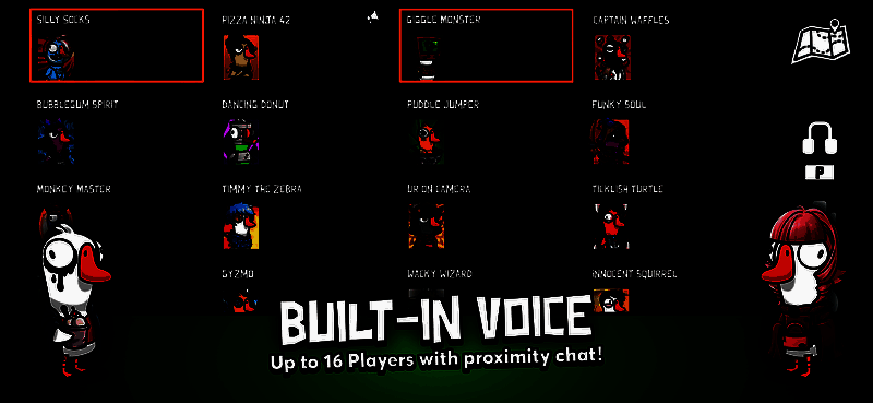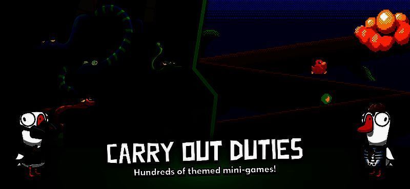 目前游戏拥有六种模式,分别为经典版,经典强化版(拥有更多角色),猎鹅(一只鸭在时间内杀死所有鹅),霸王餐,不给糖就捣蛋,最后一个则为专门交朋友聊天的模式。