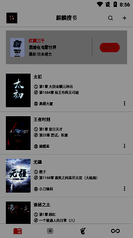 麒麟搜书网页版是一款可以一站式追书阅读的软件,可以为用户搜罗了很多精品小说,完本小说等书籍资源,还可以轻松选择查看热门小说类型,轻松在里面找到很多优秀的小说书籍来看,随时在线看书阅读,给用户带来全面的小说阅读服务和乐趣,还拥有多种类型的新颖小说书籍可以自由选择,可以自由筛选,轻松找到很多优质的小说作品,能完全满足用户的所有阅读需求,而且里面的每一本小说都有有详细的分类,方便用户自由阅读看书。