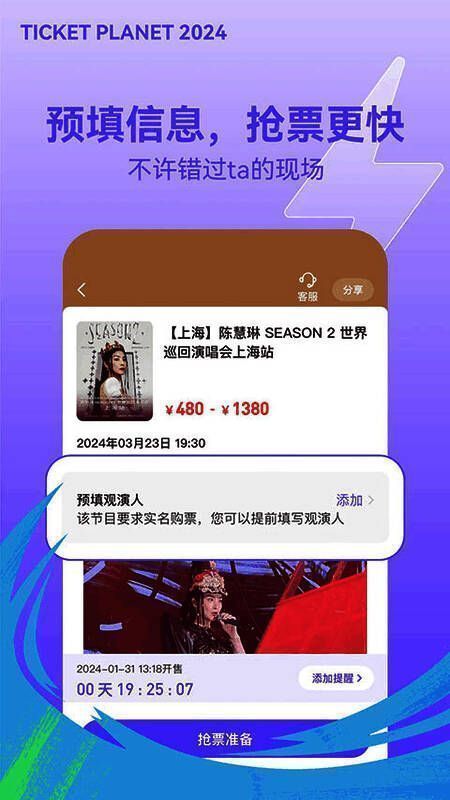 票星球最新版是一款票务app软件,适用于在手机上快速获取名人演唱会、文化演出等娱乐活动的门票。在这个应用程序中,用户不仅可以抢购音乐会、音乐节、脱口秀、舞台表演、体育比赛、展览等的门票,还可以从平台或门票来源官方提供折扣,使每个人都能更实惠、更方便地买票。同时,可以根据用户的实际地理位置向用户推荐附近的高质量票源信息。当然,用户还可以通过应用程序中的搜索功能快速搜索全国所有地区的娱乐门票来源信息。