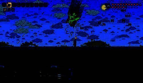 3.地面生命昼夜交替。早上,玩家可以四处奔跑,搭建各种避难所等;夜幕降临时,僵尸和各种眼球怪物会出现,要么杀死它们,要么逃跑。