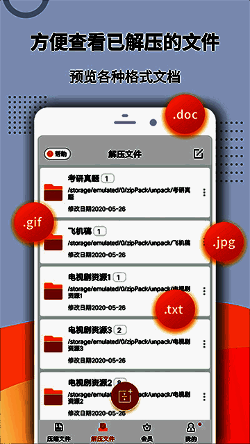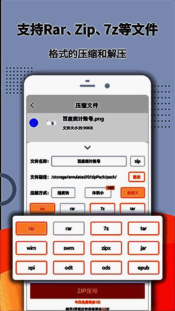 解压缩zip是一款轻松便捷且专业的手机解压缩软件,它能非常方便的帮你在你的手机上处理Zip、Rar等压缩文件,无论你是收到或下载了一个压缩文件,这款软件都能很轻松的帮你解决。该软件非常好用,解压速度快,功能强支持多种解压文件格式,支持压缩成zip文件,用起来非常爽,小编强力推荐!可以打开的压缩文件的格式有:Rar , Zip , 7z, bz2 ,bzip2, tab2, taz, gz, gzip, tgz, tar, xz, txz ;支持压缩成zip 文件。